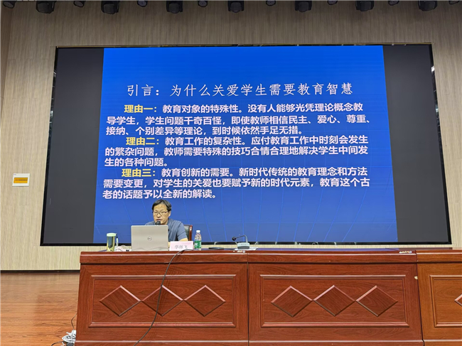 8月4日上午,培训邀请到武汉市教育科学研究院中学教研室主任、教育部首批国培计划专家华林飞老师,开展了一场主题为《关爱学生需要教育智慧》的精彩讲座。 华林飞老师在讲座开篇便抛出问题:为何关爱学生需要智慧?他指出,教育对象具有特殊性,每个学生都是独一无二的个体,问题层出不穷;教育工作繁杂琐碎,随时可能出现各种状况;时代不断发展,教育也需要创新,传统教育理念和方法对如今的学生效果欠佳,所以关爱学生需要融入新元素、讲究新方法。