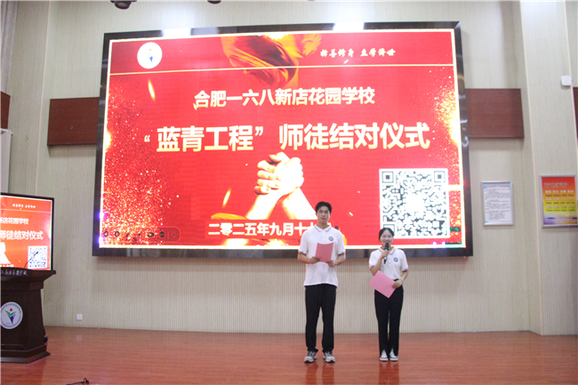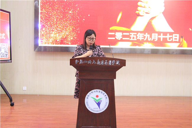 仪式在庄重而温馨的氛围中拉开帷幕。首先,合肥一六八新店花园学校校长助理丁明皎发表了热情洋溢的致辞。她亲切地讲述了实施“蓝青工程”的重要意义,指出这是学校加强师资队伍建设、积淀办学底蕴、保障可持续发展的关键举措。她对导师们提出了“倾囊相授、精心指导、教学相长”的殷切期望,希望他们以高度的责任感,在师德修养、教学理念、班级管理、业务技能等方面对徒弟进行全方位的“传、帮、带”;同时对青年教师提出了“虚心求教、勤学善思、勇于实践、快速成长”的具体要求,鼓励他们珍惜机会,主动学习,尽快形成自己的教学风格,早日脱颖而出,成为学校发展的中坚力量。