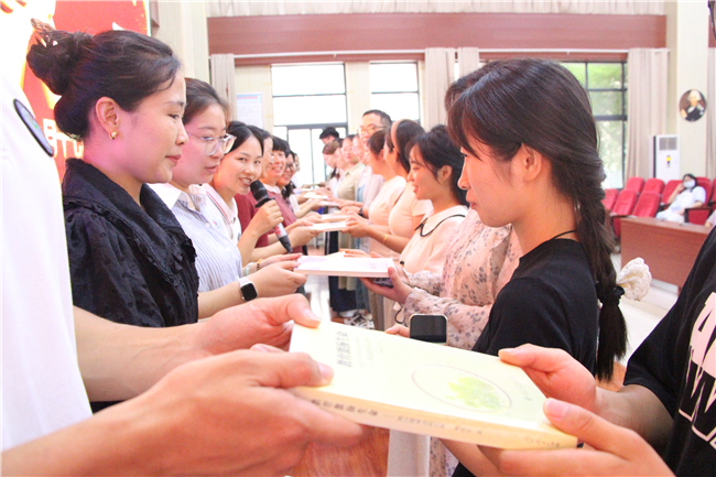 最后,举行了温馨的拜师礼仪式。青年教师向导师们鞠躬行礼,用拥抱表达对导师们的崇高敬意和潜心求教的诚挚决心;导师们回赠书籍,表达对青年教师快速成长的殷切期盼和美好祝福。现场气氛热烈,掌声不断,尊师重教、薪火相传的优良传统在仪式中得到了生动体现。