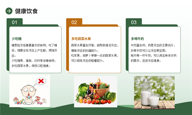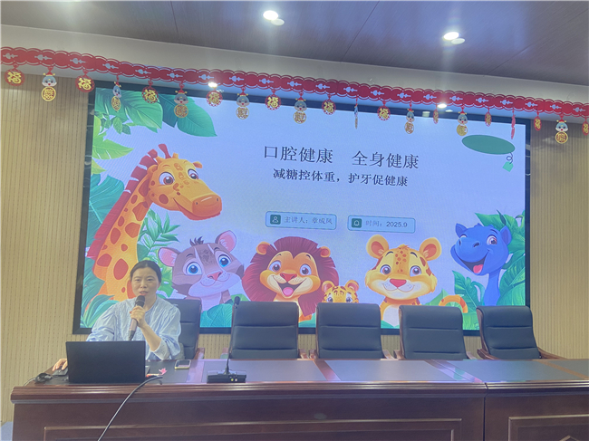 除此之外,章医生还分享了 “牙齿喜欢的食物”(含钙、维生素的蔬果、牛奶)、“要少吃的食物”(甜食、碳酸饮料),鼓励大家少吃甜食、多吃蔬菜水果,让护牙知识更全面。