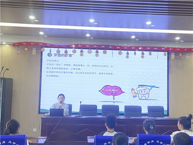 活动伊始,章医生以“牙齿的小秘密”为主题,用形象生动的图片和简单易懂的语言,带领同学们开启了探索牙齿奥秘的旅程。她详细介绍了不同类型牙齿的特点和功能,带领同学们认识了我们的牙齿,让大家对朝夕相伴的牙齿有了全新的认识。