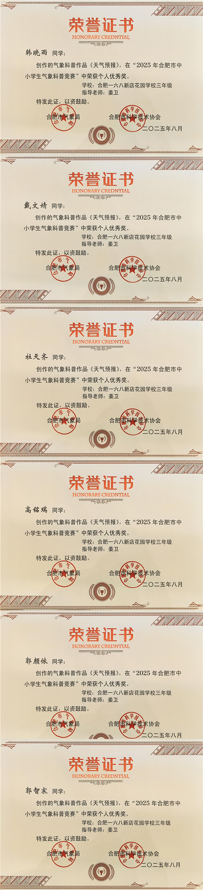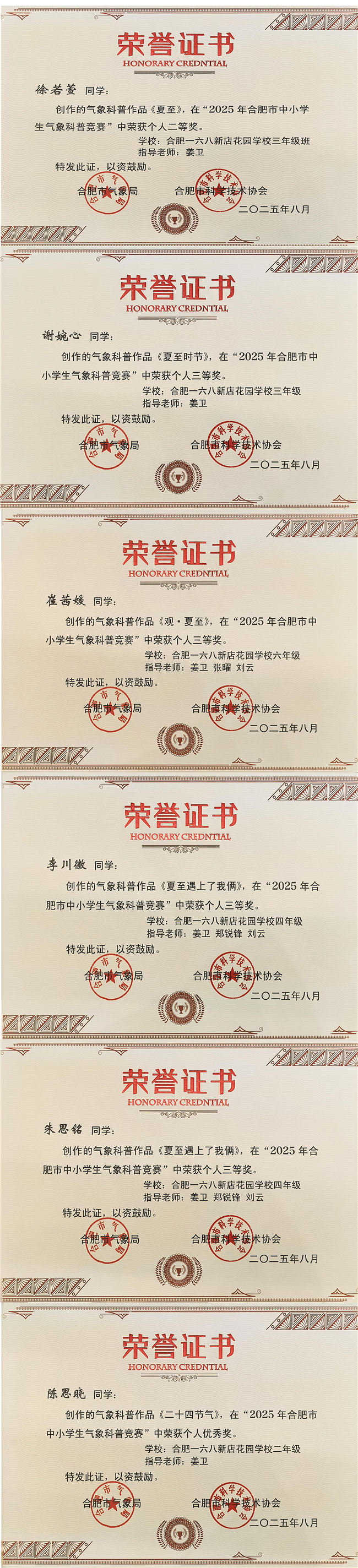 我校在2025年合肥市中小学生气象科普竞赛中喜获佳绩