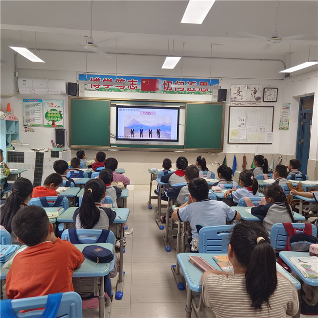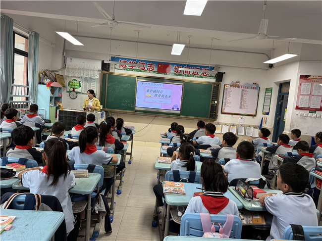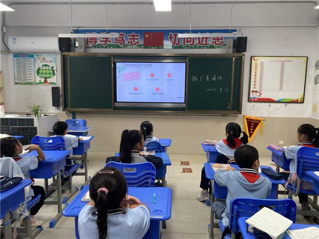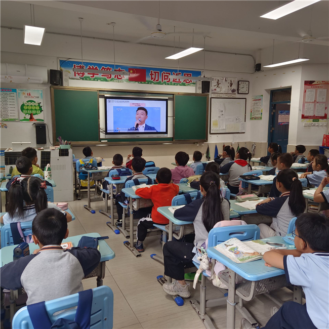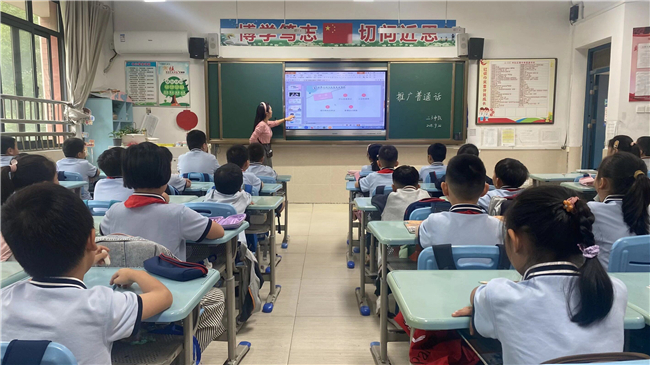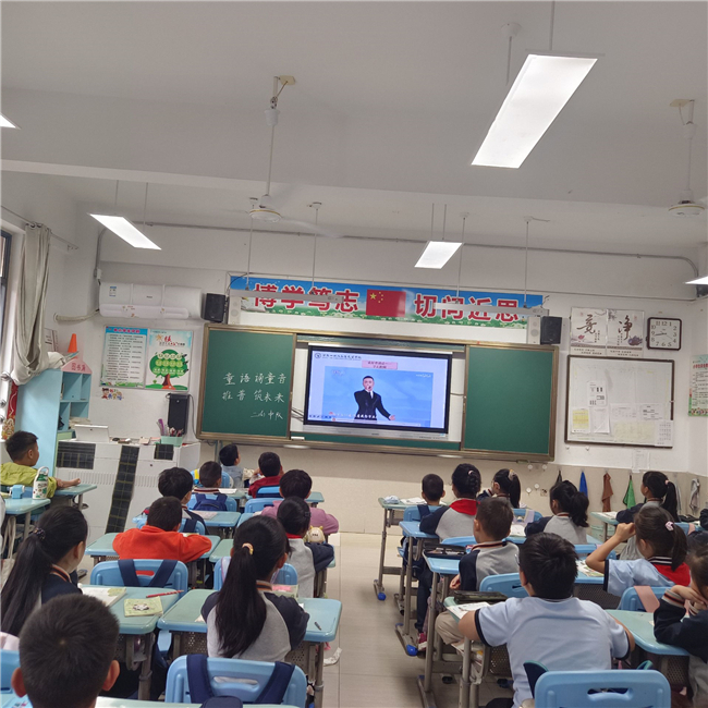 班会伊始,各班班主任以“为什么要学说普通话”为切入点,通过外国小朋友演唱《中国话》,感受不同地区同学说中国话的情景,向同学们讲解了普通话在日常交流、文化传承以及未来发展中的重要作用。“说好普通话,能让我们和不同地区的小伙伴顺畅沟通,还能更好地读懂古诗文中的美好意境。”班主任们的讲解通俗易懂,让同学们快速理解了推广普通话的意义。