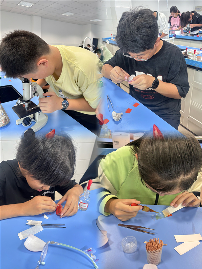 1. 洋葱根尖表皮细胞观察:从选取新鲜洋葱鳞片叶、控制染色的时间,到如何在低倍镜下找到呈正方形、排列紧密的分生区细胞,宋婷婷老师强调“精准控制变量,才能捕捉到细胞的真实形态,这是科学研究的基本素养”。