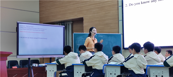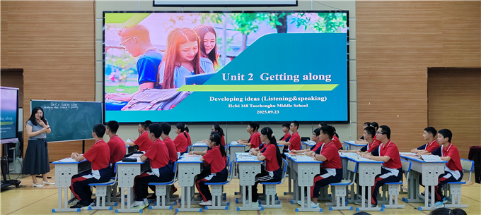 随后,合肥一六八陶冲湖中学张婷老师呈现外研版八年级上册Unit 2 Getting along 听说课(Developing ideas)课例展示。张老师聚焦听说能力培养,巧妙创设真实语言情境,引导学生在互动交流中提升语言运用能力,充分展现了新教材对学生综合语言运用能力的培养要求,为八年级教师的新教材教学提供了清晰的设计思路。