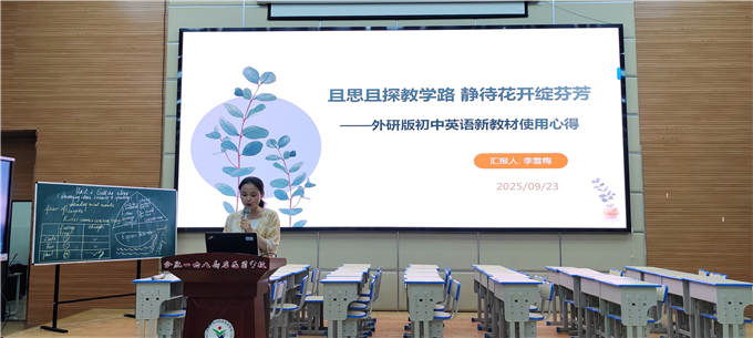 随后,合肥一六八新店花园学校李雪梅老师分享外研版七年级英语新教材教学经验。李老师结合自身教学实践,从教材整体概述、教材亮点、教学困惑和反思与展望等方面,毫无保留地分享实用教学技巧,让参训教师尤其是新入职教师深受启发,进一步明确了新教材教学的实践方向。
