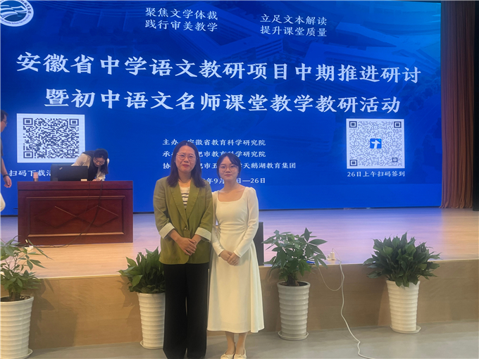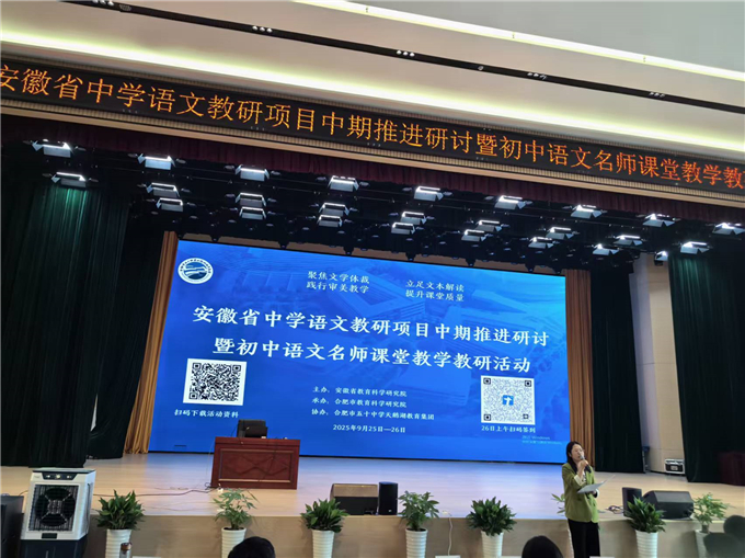 金秋送爽,学韵流芳。2025年9月25日至26日,由安徽省教育科学研究院主办、合肥市教育科学研究院承办的“安徽省中学语文教研项目中期推进研讨暨初中语文名师课堂教学教研活动”在合肥市五十中学天鹅湖教育集团奥体校区成功举办。本次活动以“新课程背景下的中学语文课堂教学高质量发展实施路径探索”为主题,聚焦文学类文本阅读教学,旨在推动语文教学改革,提升教师专业素养。我校初中语文教师李芙蓉受邀参会,并作课例分享《往事依依》,获得与会专家和教师的一致好评。