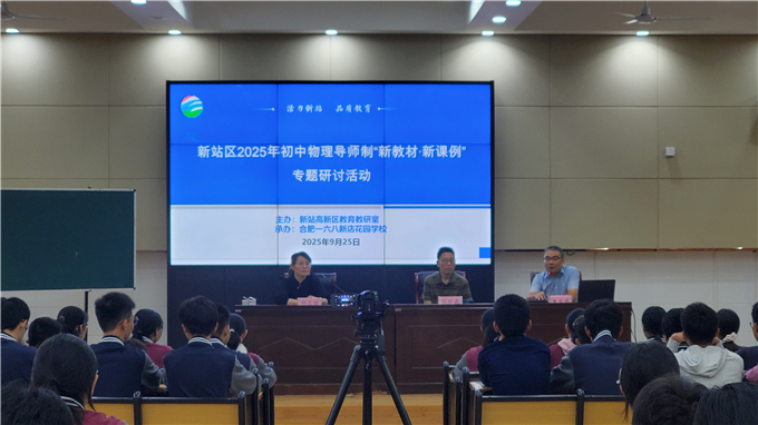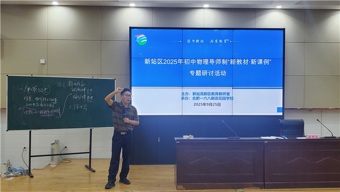 2025年9月25日,合肥新站高新区初中物理导师制“新教材・新课例”专题研讨暨“续目标・明路径”专题讲座活动在我校中学部小报告厅成功举办。全区初中物理导师制成员、近三年入职教师、名师工作室代表及各校教研组长、备课组长、骨干教师共同参与。