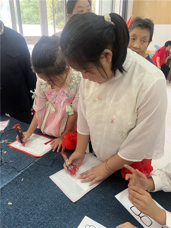 活动现场,同学们率先参与“欢乐手工绣”项目。大家领取国庆主题手工材料包,全身心投入到创作中,在同学协作与专注里完成手工绣作品,志愿者们在旁协助分发材料、整理工具,让现场充满了温馨的协作氛围。