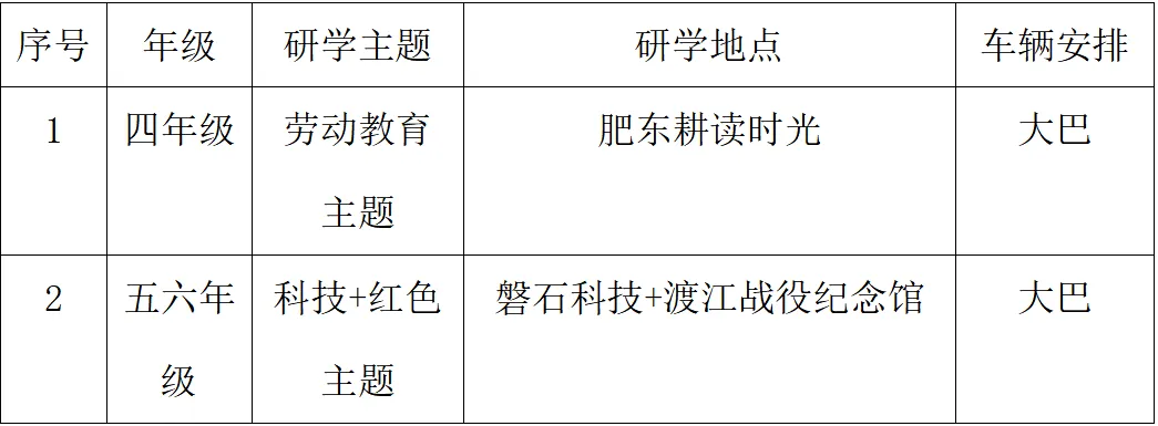 合肥一六八新店花园学校陶冲湖校区2025年秋研学旅行课程拟定路线: