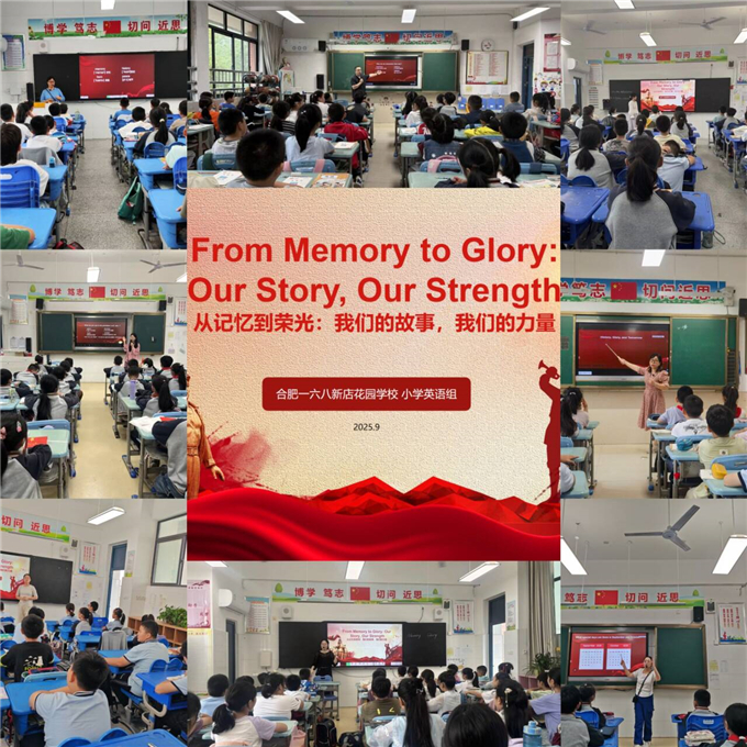 为迎接中华人民共和国成立76周年,深化爱国主义教育,合肥一六八新店花园学校小学英语组于2025年9月在三至六年级成功开展了以“From Memory to Glory: Our Story, Our Strength(从记忆到荣光:我们的故事,我们的力量)”为主题的跨学科项目化思政微课堂活动。