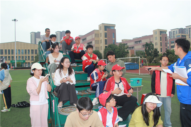 他们不是运动员,却比运动员更紧张;他们不参加比赛,却同样挥洒汗水。秩序册中明确规定:“班主任全程跟班,负责提醒运动员参加比赛,组织班中学生有秩序地观看比赛,确保班中运动员与其他学生的安全。”他们不仅是班级的组织者,更是学生心灵的依靠。一声声“加油”,一次次搀扶,一句句叮嘱,都是这个秋天最动人的语言。