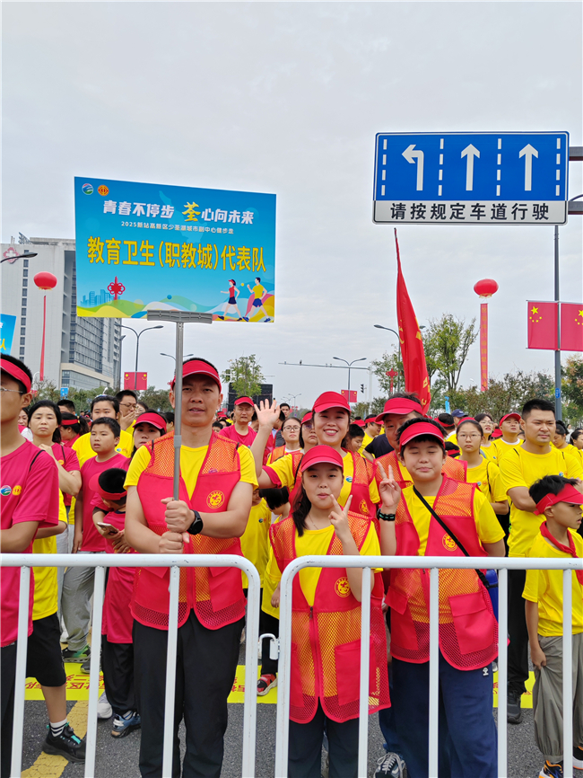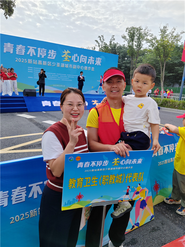 金秋送爽迎盛世,师亲同行颂祖国。10月1日上午,正值祖国华诞当天,由新站高新区管委会主办的“青春不停步·荃心向未来”2025年新站高新区少荃湖城市副中心健步走活动,在少荃湖公园正式拉开帷幕。合肥一六八新店花园学校的教师代表及子女有幸成为教育卫生工会的亲子方阵代表队伍,他们以稳健步履传递温情,以同心姿态共贺祖国华诞,成为活动现场一道亮眼的“教育风景线”。