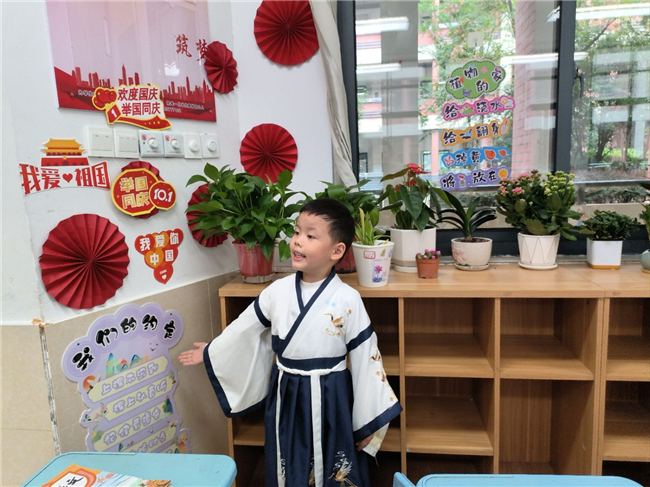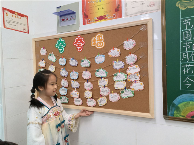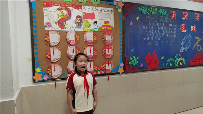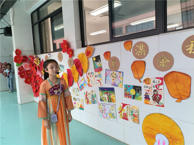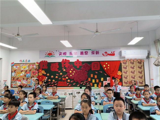 此外,各班拍摄特色合影,或与国旗同框致敬祖国,或着传统服饰喜迎中秋;部分中队还自主开展手势舞拍摄、团扇制作等活动。此次活动不仅让教室成为充满文化气息的成长空间,更凝聚了班级力量,让爱国与传承的种子在学子心中悄然扎根。