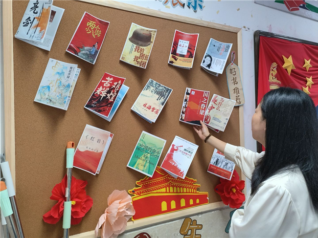 教室后,黑板报绘就 “我爱你!中国”“盛世华章,金秋月圆” 等主题画卷。