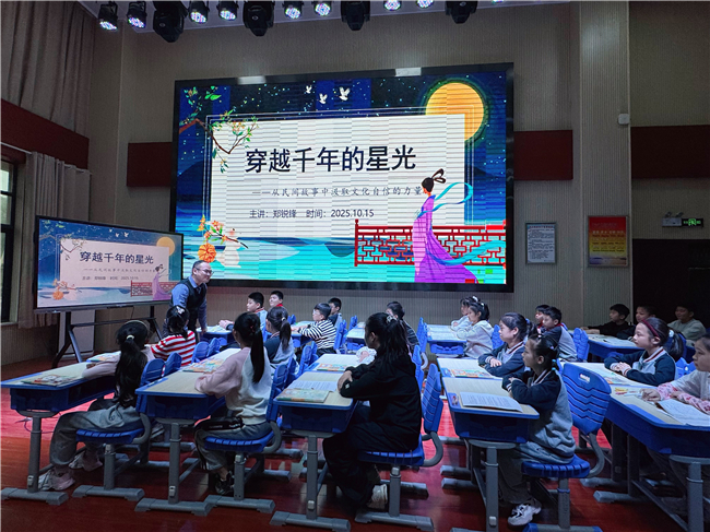 为深入探索语文教学与思政教育的有机融合,厚植学生家国情怀与文化自信,合肥一六八新店花园学校小学部于2025年10月15日,在报告厅成功举办了一场别开生面的语文公开课。本次活动聚焦思政主题,李鑫婉老师和郑锐锋老师分别执教《圆明园的毁灭》与《穿越千年的星光——从民间故事里汲取文化自信的力量》,为语文教师们呈现了两节富有深度与温度的示范课堂。