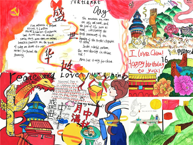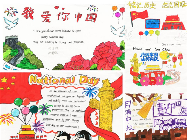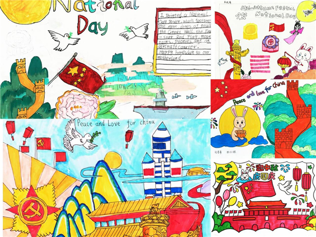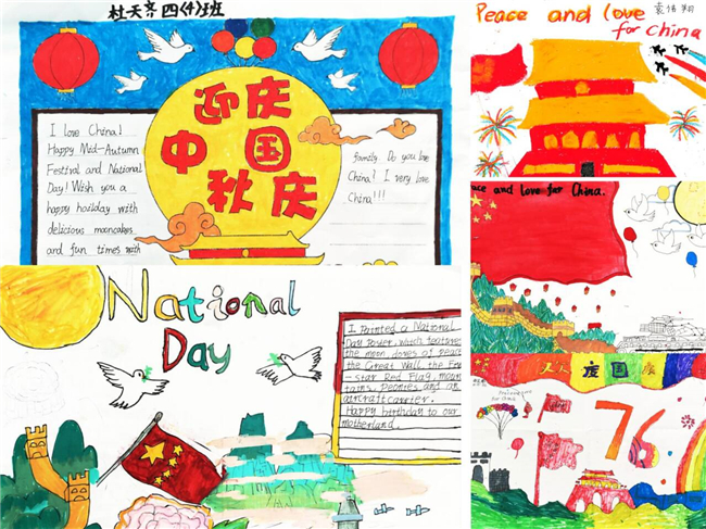 本次综合实践拓展活动紧扣“铭记历史、珍爱和平、欢度双节、祝福祖国”的主题,融合了英语、美术、音乐、语文等多学科元素,鼓励学生用个性化的创作抒发爱国之情。活动中,同学们亲手绘制的画卷传递着对祖国的热爱,清澈的童声吟唱表达着对祖国生日的祝福。