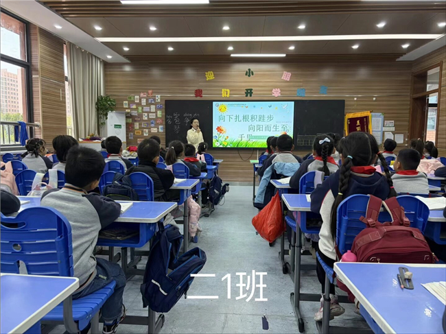 天色阴沉,劲风呼啸,卷起地上的落叶。合肥一六八新店花园学校陶冲湖校区将庄严的升旗仪式移至教室。当雄壮的国歌声在室内回荡,鲜艳的五星红旗在全体师生的注目下,于屏幕上冉冉升起。这不仅是一次因天气而调整的升旗仪式,更是一堂以“向下扎根积跬步,向阳而生至千里”为灵魂的生命教育大课,在风的呼啸声中,生命拔节的序曲奏响了。