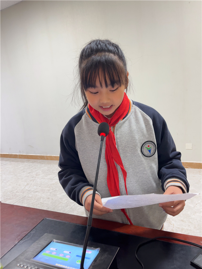 三(6)中队队员朋子依的发言,穿透了窗外的风声,充满了朝气与力量。他们用真挚的情感、朴实的语言,分享着对“向阳而生”的理解。那是面对困难时的乐观与勇气,是追求梦想时的执着与热爱,是集体生活中的互助与友爱。他们如同向日葵一般,即使天空阴沉,内心也永远朝着阳光的方向,汲取温暖与能量,努力绽放生命最美的光彩。这“向阳而生”的姿态,是对生命最热烈的礼赞,也是对“至千里”目标的坚定追求。