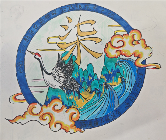 大赛自启动以来,得到了七年级学子的积极响应。同学们结合班级特点,将团结、奋进、梦想等元素融入设计。有的以动物、山海为主体,彰显勤奋好学的班风;有的用海浪、帆船造型,象征同学间的勇敢拼搏;还有的巧妙结合班级口号,用鲜艳的色彩传递青春活力。作品形式丰富,既有细腻的手绘稿,也有精致的电子设计,每一份作品都充满了对班级的热爱。