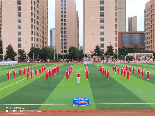 运动会开幕式上,我校特色项目《最好的舞台》篮球操,惊现全场。运动员们身着篮球运动服,迈着铿锵有力的步伐,跟着音乐的节拍,一只只篮球如同注入了生命一般,在绿茵地上跳动着,最终斩获特等奖(连续五年)。中学广播操整齐的队形、饱满的精神,赢得了现场观众的阵阵掌声,展现了我校学子团结奋进的良好姿态。