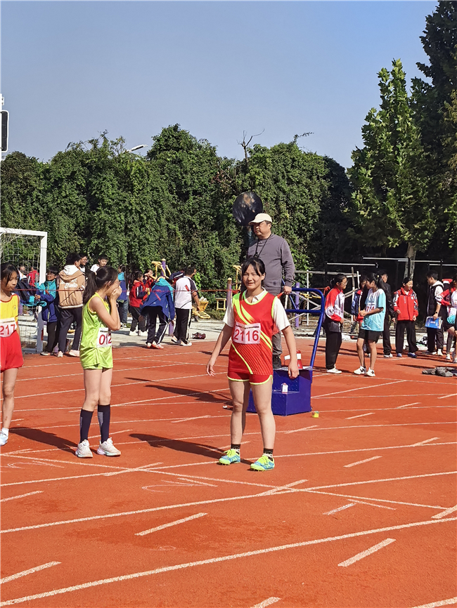接力赛项目中,我校学子更是展现了极强的团队协作能力。中学女子组4×100米接力赛上,四名队员交接棒精准流畅,配合默契,顶住对手的激烈追赶,最终逆转夺冠;中学男子组4×100米接力赛上也斩获决赛第二名。