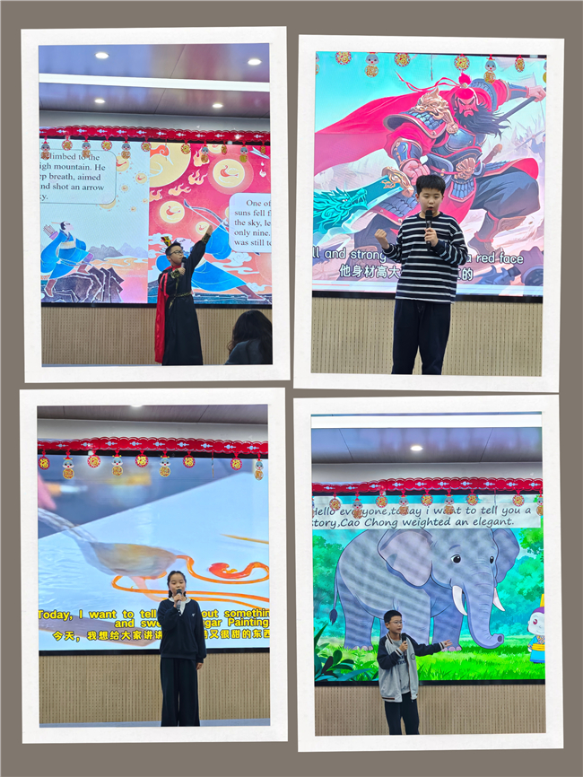 东方韵味在四五年级“语说东方韵——英语中国故事汇”中缓缓铺开。学子们化身“文化小使者”,用流利英语将中国故事的韵味传递开来:有的孩子以抑扬顿挫的语气讲述《愚公移山》,让坚持不懈的精神透过英语更显生动;有的孩子结合春节PPT,把春节的习俗与文化内涵娓娓道来;还有的孩子通过演绎孔融让梨,让谦让美德在英语表达中更具温度。孩子们不仅英语说得好,更能抓住中国故事的文化韵味,真正做到了用英语传东方韵,这正是韵满陶园的最好体现。