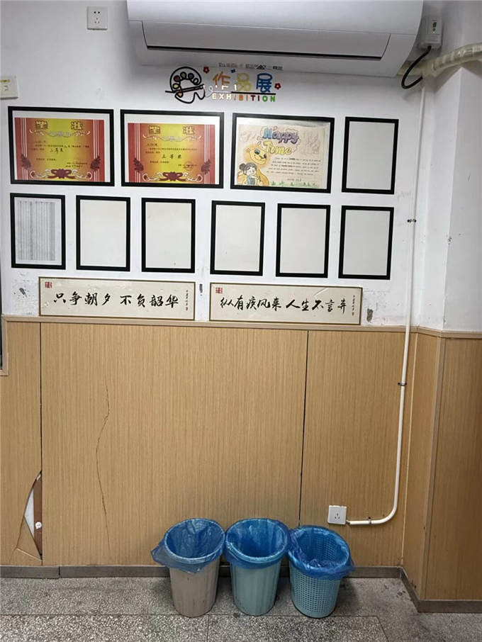 整洁美化是基础底色。八5班、九 4 班、九 6 班等卫生角整洁干净,洁具归置有序,让教室成为清爽舒适的学习家园;七9 班专门设置雨伞放置区,细节处彰显文明素养。