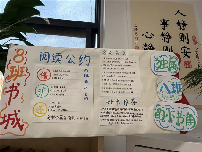 书香浸润点亮成长之路。七 8 班、八 7 班打造班级图书角,制定借阅公约,张贴名人名言,推荐经典书目,让 “读好书、好读书、读书好” 的理念深入人心,营造出浓厚的阅读氛围。