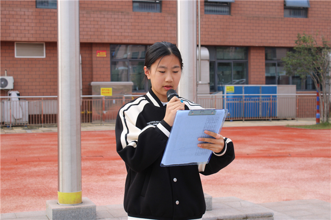 升旗仪式后,六(2)班常安然作为学生代表发言。她结合生活中的科技案例,分享了自己对科技的理解与感悟,呼吁同学们从小爱科学、学科学、用科学,主动探索科技奥秘,努力成为新时代的科技追梦人。她的发言真挚有力,赢得了师生们的阵阵掌声。