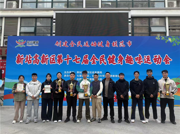 为积极响应全民健身号召,丰富教师课余生活,凝聚团队协作力量,近日,新站高新区第十七届全民健身趣味运动会在七里塘社区、合肥市兴花园小学教育集团举行。我校高度重视此次赛事,第一时间组建教师代表队,选派20余名教师参与拔河比赛、集体跳长绳、旱地龙舟、骑士投篮、乒乓球掷远、足球射门、投壶七大项目的角逐。赛场上,我校教师以昂扬的斗志、坚韧的毅力与默契的配合,在趣味运动中书写拼搏故事,展现了新时代教育工作者的活力与担当。