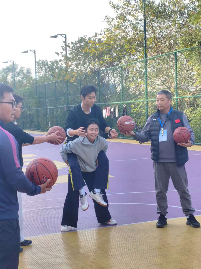 除了考验团队协作的集体项目,骑士投篮、足球射门、乒乓球掷远、投壶等个人与趣味结合的项目,同样留下了我校教师的精彩身影。在骑士投篮项目中,教师们需骑在另一位教师的身上,在保持平衡的同时将篮球投入篮筐。我校参赛教师调整呼吸、瞄准篮筐,一次次尝试中不断调整姿势,最终凭借稳定的发挥投中多球!