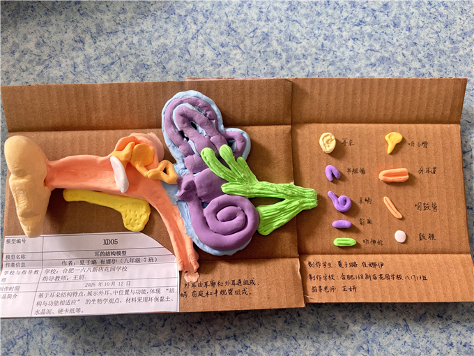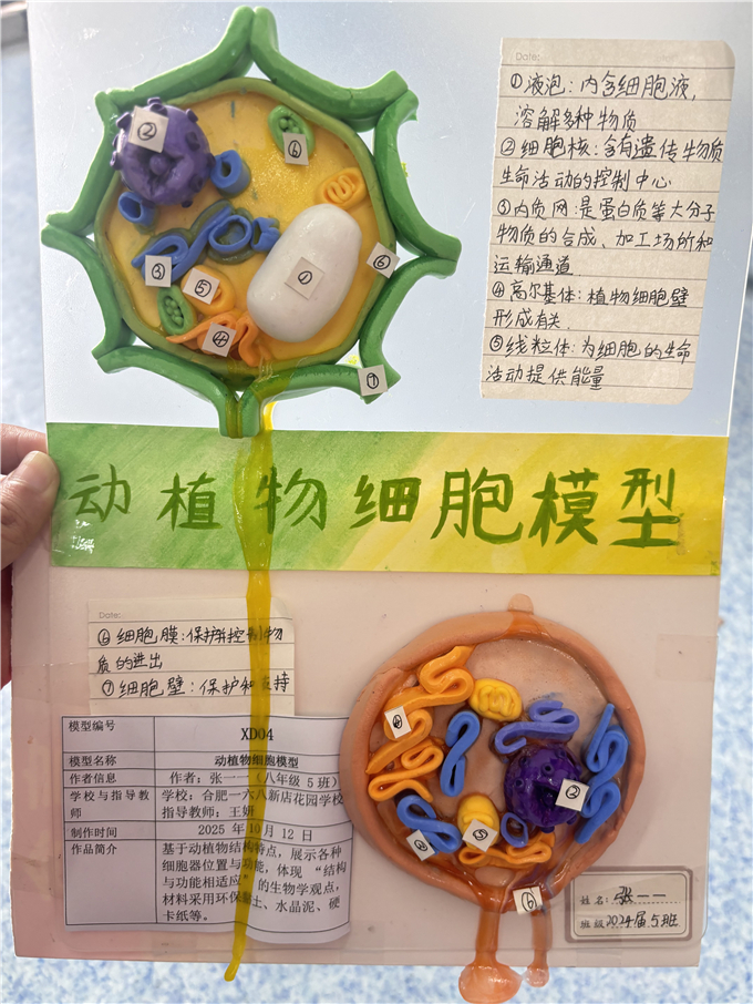 近日,合肥新站高新区中学生生物学模型制作比赛圆满落幕。本次赛事以“立体解构生命,科学点亮思维”为主题,明确要求参赛作品需严守科学性核心,贴合生物学原理、结构设计严谨合理,且必须具备三维立体特征,让抽象的生命知识转化为可触摸、可探究的实体。我校学子凭借扎实功底与创新思维脱颖而出,参赛作品包揽一、二、三等奖,斩获优异成绩,彰显了我校生物学教学的实践成效。