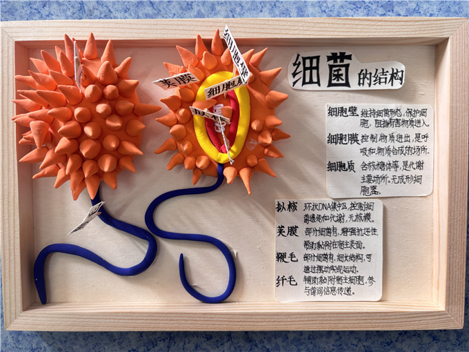 这份亮眼成绩的背后,是生物组教师团队全程严谨细致的倾心护航。为让学生的创作既具创意又不失科学本质,老师们将指导贯穿教学全程:课堂上,结合教材重难点,系统讲解生物结构的核心逻辑与模型制作的科学规范,从细胞结构到器官功能、从微观生物到生命历程,逐一拆解创作要点;课后,教师们针对每一件作品的雏形逐点核查、精益求精。面对《细菌结构模型》中鞭毛的形态比例,老师对照专业图谱反复校准、《心脏模型》的腔室连接角度,老师们都用标尺测量、对照教材反复推敲,不放过任何细节偏差,以极致严谨的态度帮学生查缺补漏,力保每一件作品都经得起科学检验。