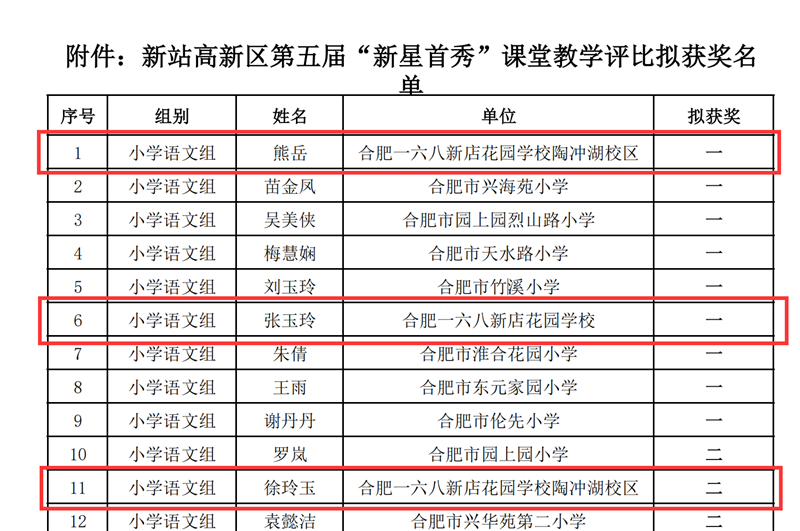 喜报!合肥一六八新店花园学校教育集团教师在新站区第五届“新星首秀”课堂教学评比中斩获佳绩