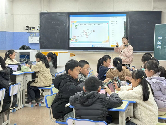 2025年11月20日下午,合肥一六八新店花园学校成功举办智慧课堂公开课展示活动。张芳老师与夏维维老师分别围绕《可能性》和《认识射线、直线和角》两个课题,充分运用智慧课堂平板技术,为现场师生呈现了两节生动有趣、内容充实的优质公开课。课后,教研组组织开展了集中评课与深入研讨,进一步挖掘教学亮点,凝聚教学智慧。