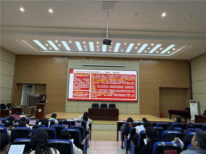 为进一步加强我校学生心理健康教育工作,提升全体教师对学生心理问题的识别与应对能力,构建全员、全程、全方位的心理育人格局,11月21日下午,我校在初中部大报告厅举行了《中小学心理健康问题预防与干预工作实施导则》全员学习专题培训。本次培训由我校心理教师陈丹阳老师主讲,学校全体教职工参加了学习,旨在帮助全体教职员工明确自身职责、把握关键节点、精准识别支持,共同构建一个高效协同的“全员心育”防护体系。