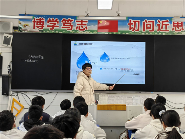 课程尾声,汪老师发出倡议:“节约用水,不仅是保护一种资源,更是守护我们共同的地球家园,是关心国家长远利益的责任担当。”这节地理课,既让学生掌握了水资源的核心知识,更让“家国情怀”“责任担当”“生态文明”等思政理念深植实际生活,实现了“知识传授”与“价值引领”的同频共振,为学科融合思政教育提供了鲜活范例。