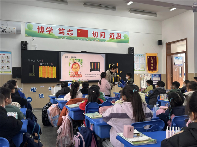 为深化小学数学课堂教学研究,提升“数的认识”教学的有效性,2025年11月27日下午,合肥一六八新店花园学校陶冲湖校区数学组举行了一场以《认识100和计数单位“百”》为主题的教学研讨活动。本次活动由二年级教师张丽执教,全体数学教师共同参与观摩与研讨。