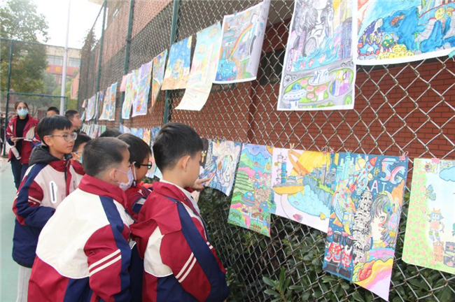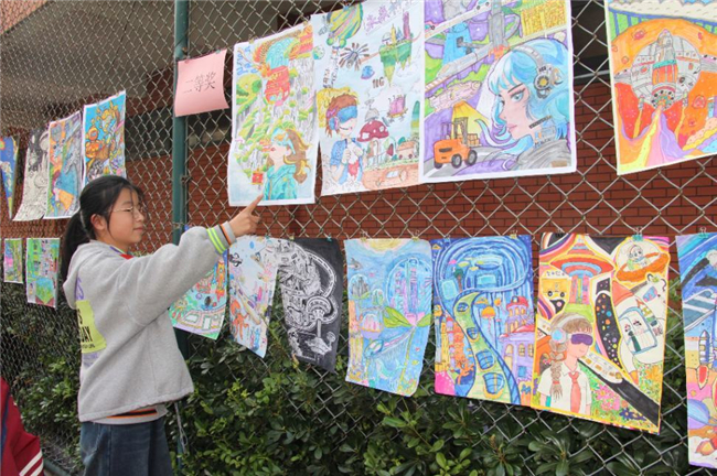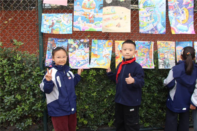 科幻画展览:孩子们用画笔畅想未来科技与宇宙探索。