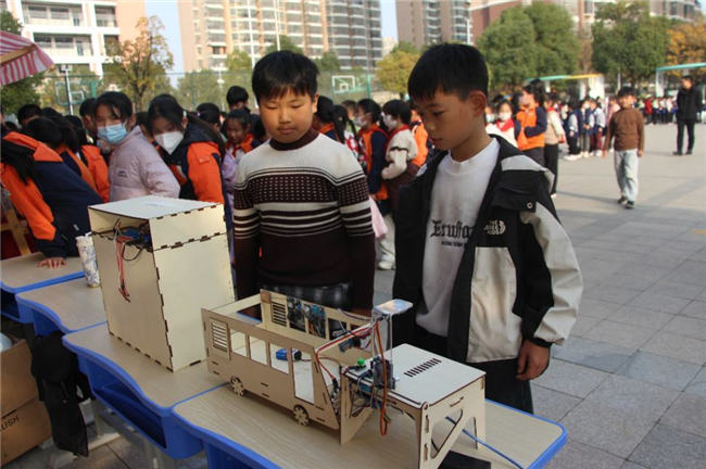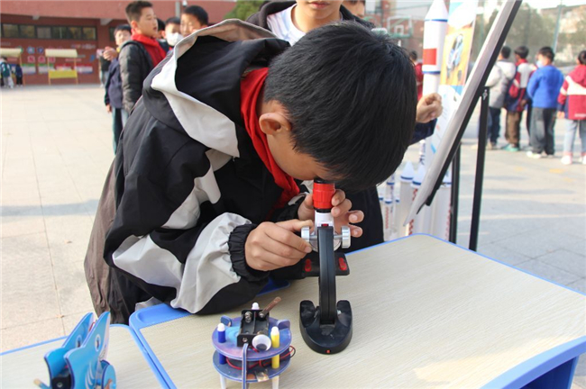 科创展览区,成为了学生们流连忘返的“创意集市”。展区内容丰富多彩,涵盖了艺术与科学的结合。