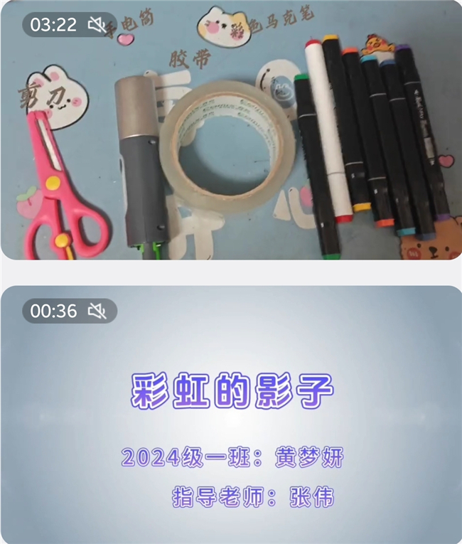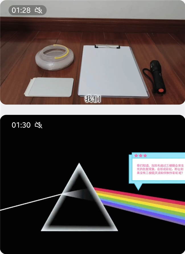 “物理工艺坊:光影杯中起,斑斓墙上生”活动吸引了八年级学生的广泛参与。同学们面对的是一个富有诗意的挑战——如何留住转瞬即逝的彩虹?活动分为两个任务:动手用身边仪器形成彩色影子并拍摄视频演示讲解;自制投影仪将彩虹留住并拍摄视频演示讲解。