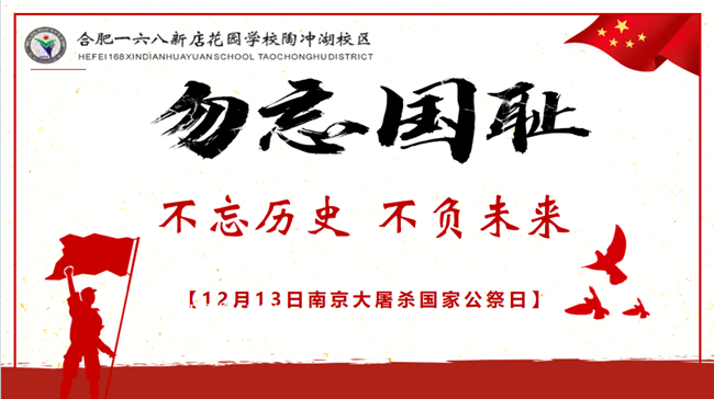 2025年12月13日是第十二个国家公祭日,为了深切缅怀南京大屠杀遇难同胞,弘扬爱国主义精神,培育广大师生的历史责任感与使命感,合肥一六八新店花园学校陶冲湖校区开展了“不忘历史,不负未来”系列主题教育活动。