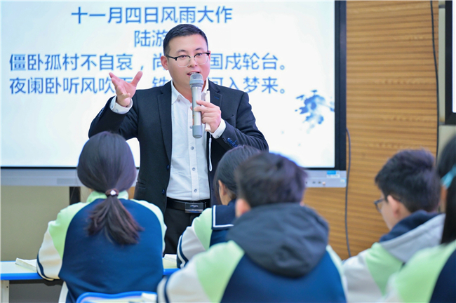 下午场的活动同样精彩。合肥新站实验中学王亚芹老师以《十一月四日风雨大作》,聚焦陆游“一生许国”的精神内核:从“僵卧孤村”的困境,到“王师北定”的执念,通过反复诵读与背景补充,让学生在诗人的“临终之愿”中读懂“家国情怀”的审美重量。