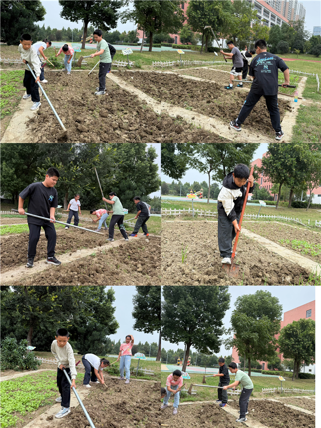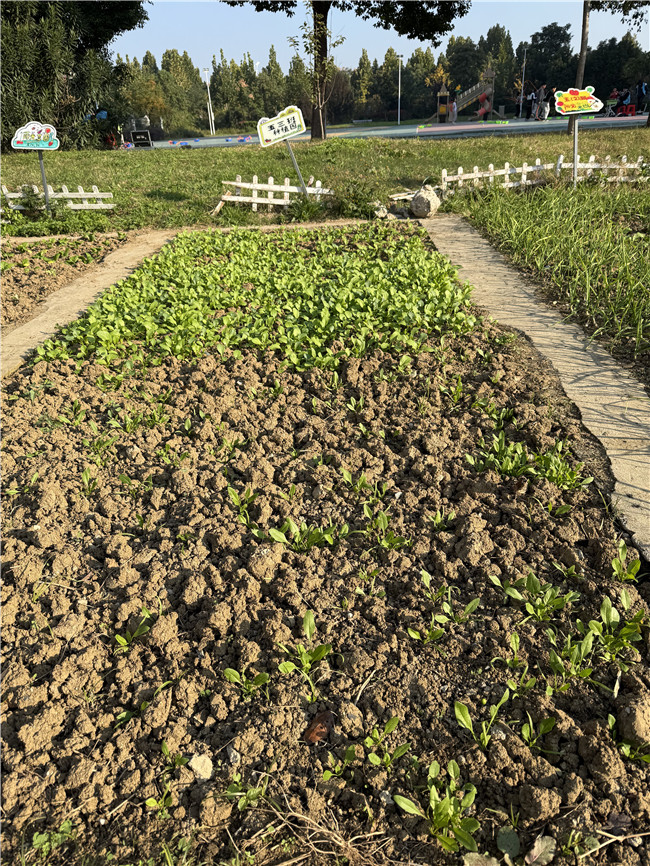 另一块地分给菠菜和小青菜,同样各占3.87平方米。胡萝卜和白萝卜也一样,不用分啦!”课本上的小数除法,成了“分地盘”的神器。分好啦,开干!大力气的男生抢抢先拿起锄头翻地,女生们则拿了小锄头敲碎大土块,累了就换一拨人继续上。大家分工明确,忙的不亦乐乎。“原来数学课上学的乘除法,在种菜时这么有用!”同学们边种边说,“以前总觉得数学在课本里,现在才发现,它就在我们手里的锄头旁边呢!”