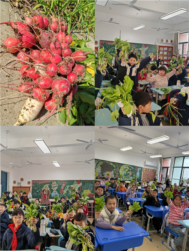 秋收之喜:一个半月的辛苦与等待,菜地成了“蔬菜乐园”:茼蒿嫩得掐出水,香菜带着清香,菠菜绿油油的,小青菜嫩嫩的,胡萝卜和白萝卜在土里藏不住……我们的“百蔬园”迎来大丰收啦,6个班级分批次,在孙老师和夏老师的带领下,分别进行收获活动。孩子们刚开始还舍不得拔菜呢,他们长得太可人了。,孩子们刚开始还舍不得拔菜呢,他们长得太可人了。看着自己用数学知识规划的菜园,虽然汗水浸湿了校服,却个个笑得灿烂。