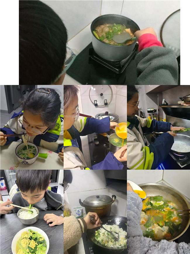 最暖的是晚餐时刻:青菜鸡蛋汤里有“3.87平方米”的规划,清炒小青菜藏着“25×3.87”的计算,大蒜炒鸡蛋里裹着“15.48平方米”的耕耘。“这菜是我们用小数乘除法种出来的!”同学们吃着自己亲手种的菜,眼里闪着光。