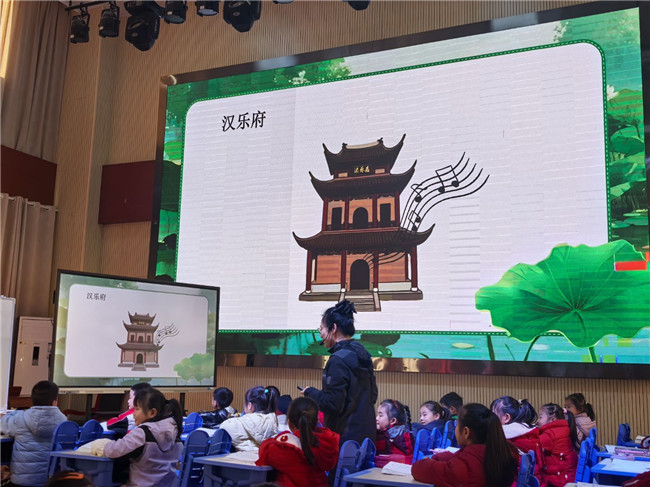 “江南可采莲,莲叶何田田……”在何文娟老师的语文课上,悠扬的吟唱声代替了传统的朗读。她执教的古诗《江南》,突破常规,将古典诗词的韵律与音乐旋律巧妙融合,引导孩子们在舒缓的节奏中想象莲叶接天、鱼戏其间的江南美景。课堂氛围宁静而专注,学生们在哼唱中不仅轻松记诵了诗句,更仿佛进行了一场穿越时空的审美漫步,直观感受到了中华古诗文的音韵之美与意境之妙。
