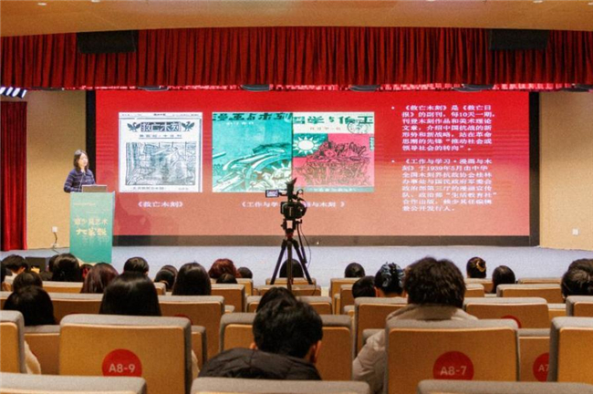 12月5日上午9:30,第二场讲座接续开讲,中国美术家协会会员、天津美术学院中国画学院讲师李中诚,以“木刻介入漫画——从‘全漫展’广西巡展看赖少其的漫画创作和宣传策略”为题展开分享。他从跨媒介艺术实践的角度,剖析了赖少其在特殊历史时期的艺术创作智慧与宣传策略,为美术教育工作者拓展了艺术研究的新维度。