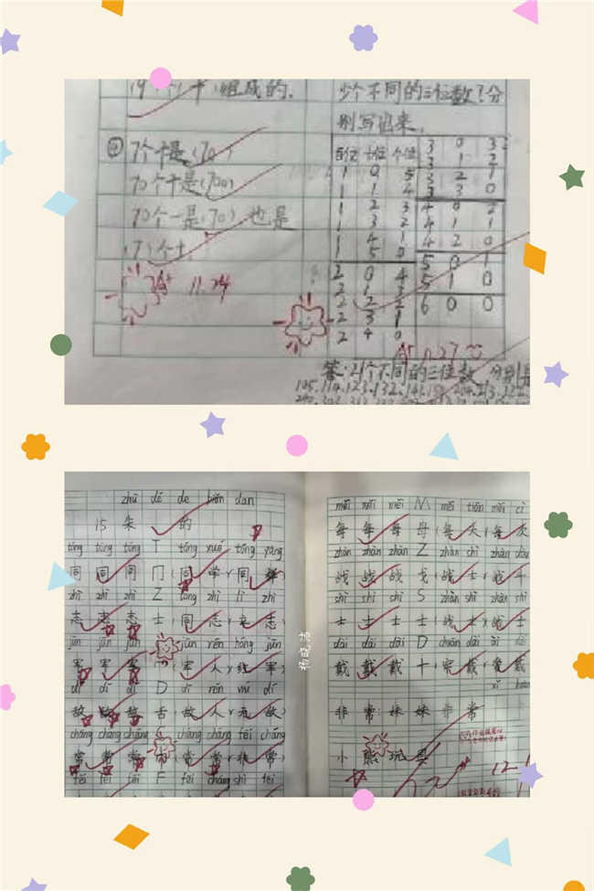作业批改是师生之间温暖的“对话”。老师们不仅批改及时、反馈细致,还通过个性化评语、激励小符号、范例订正等方式,用心呵护学生的学习热情。教务处强调,作业不仅是知识的巩固,更是师生情感与思维的桥梁。